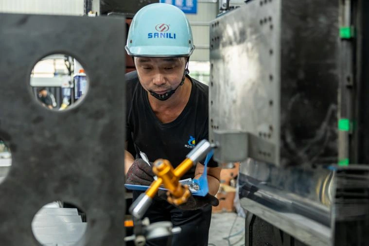 3. 0,01 mm daxilində dəqiqliyi təmin edərək, Z oxu bələdçi relsi ilə iş masası arasındakı perpendikulyarlığın bütün maşında yoxlanılmasını həyata keçirin.