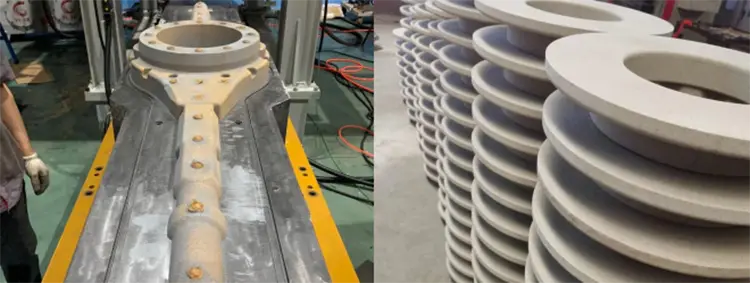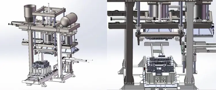 Aşağı Kalıp Giriş → Kalıp Bağlayan [aşağıya doğru təzyiq] → Birləşmə modulu] → Qum enjeksiyon başı